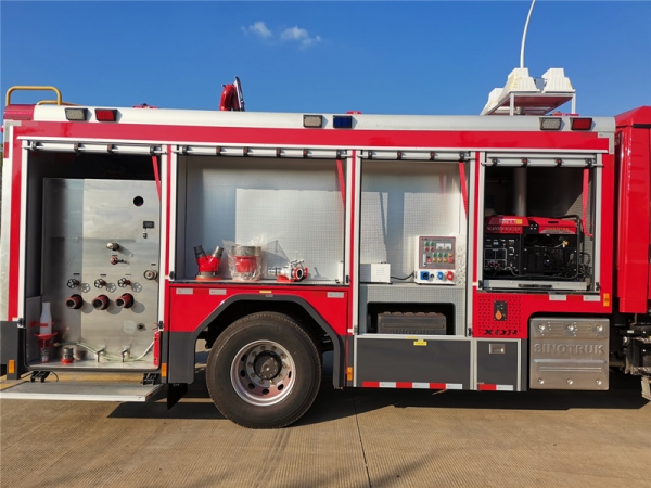 乘员室内设备:除原车设备外,加装有100W警报器、警灯开关、取力器控制开 关、指示灯。