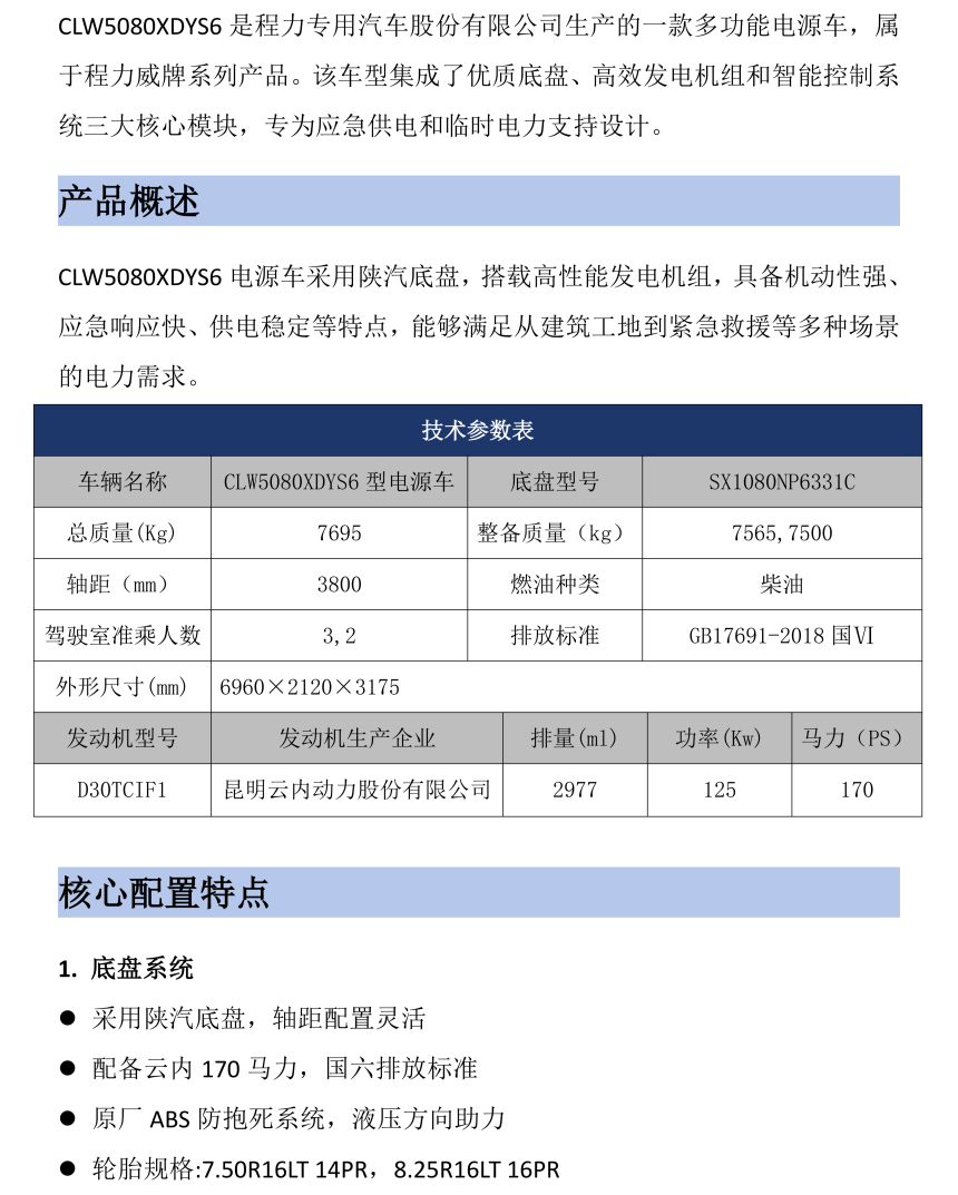 CLW5080XDYQ6电源车