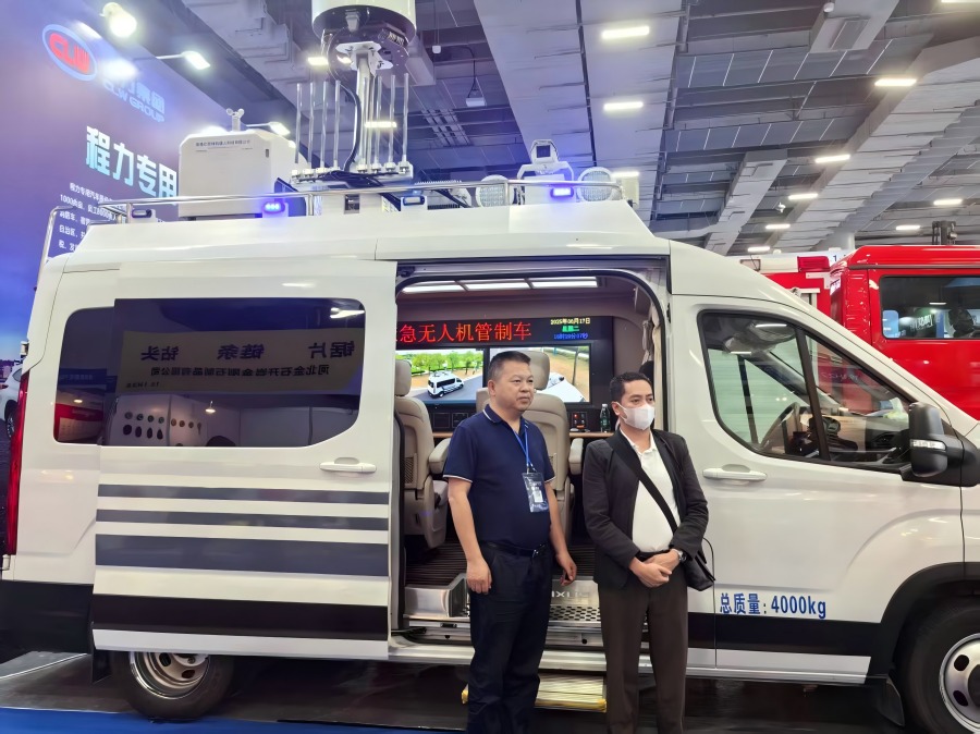 在广交会展区现场,程力展位的无人机指挥车以科技感十足的外观率先抓住众人目光。该车集成了先进的无人机起降平台、多频段信号传输系统与智能指挥调度终端,可实现无人机快速部署、实时数据回传及远程指挥调度。无论是应急救援场景下的灾情侦查、物资投送,还是大型活动中的空中安保巡逻,这款指挥车都能凭借强大的功能组合,为用户提供高效、智能的解决方案。工作人员现场演示了车辆与无人机的协同作业流程,精准的任务执行能力与流畅的系统操作,赢得现场观众阵阵赞叹。
