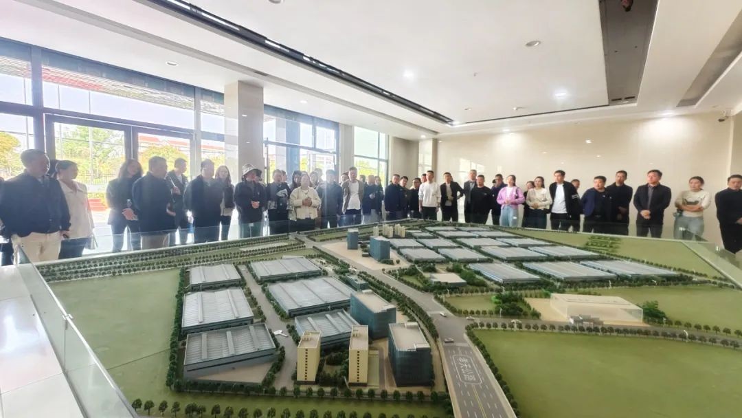 图九(上):程力重工智慧绿色工厂沙盘模型图前,客商云集宾客迎门