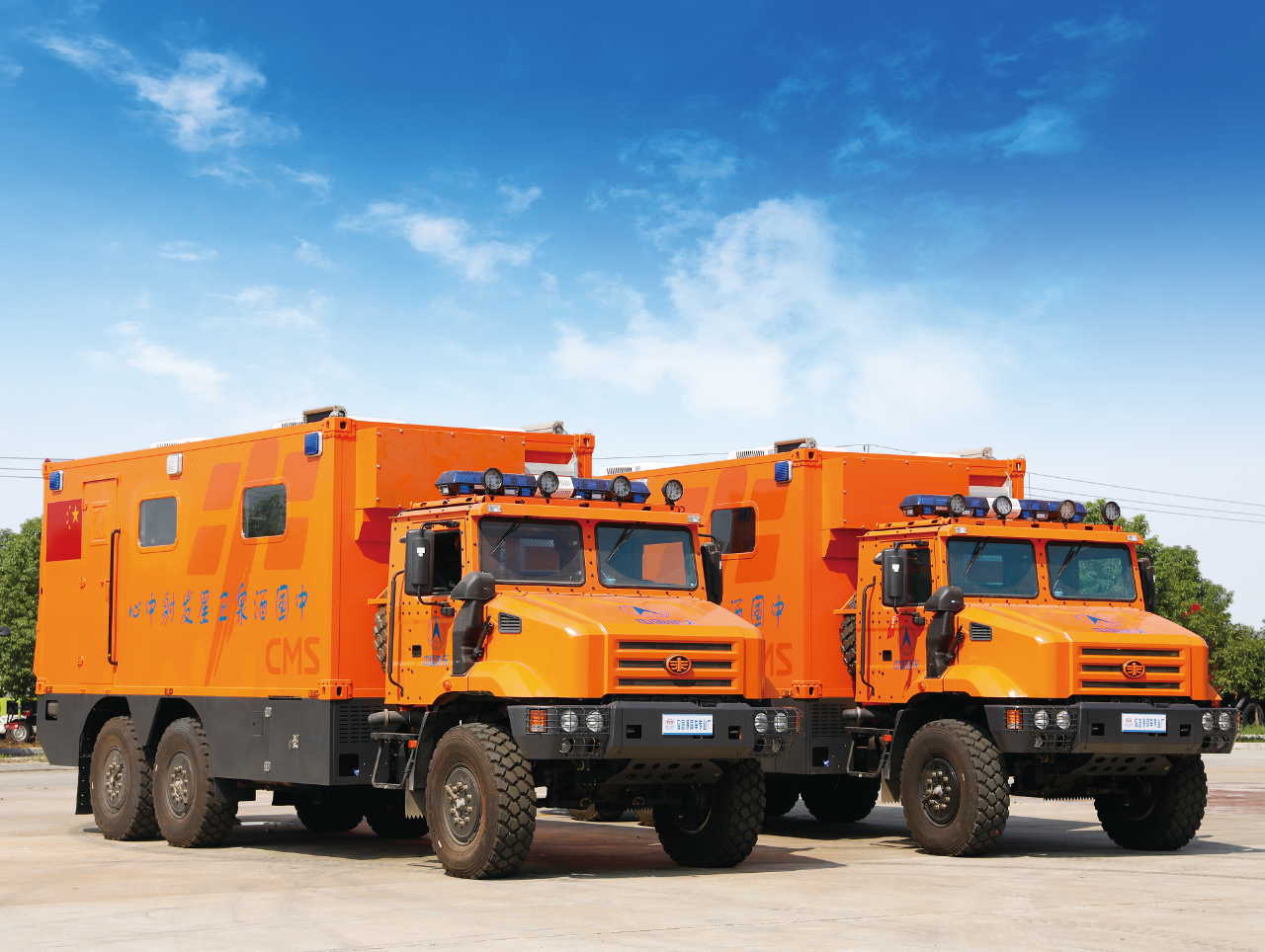 在东风着陆场上,闪烁着中国科技之光的程力牌医监医保车蓄势待发